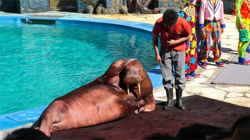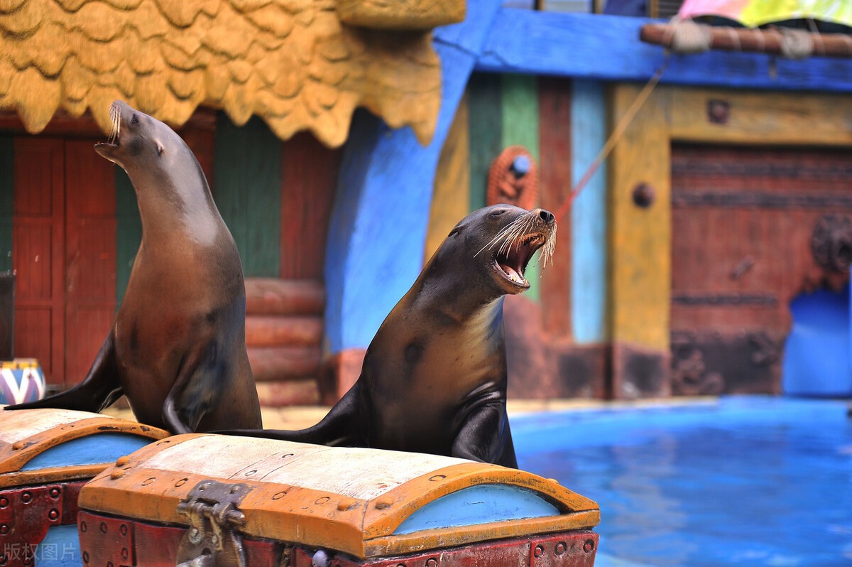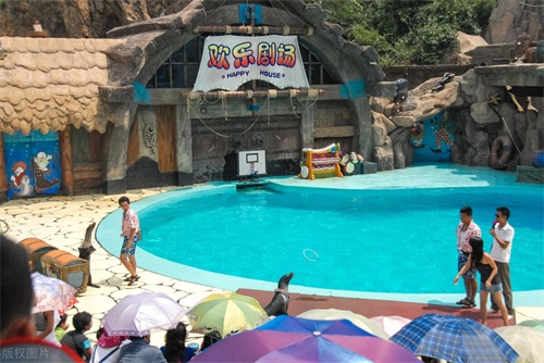 欢乐剧场海狮海象表演,时间大约为20分钟(其中也会选择一名观众互动)。旺季排队严重,也是很多游览时间不充足的游客都不能游览的场馆。表演为半露天式,下雨的话会停止表演。可以自己带坐垫。