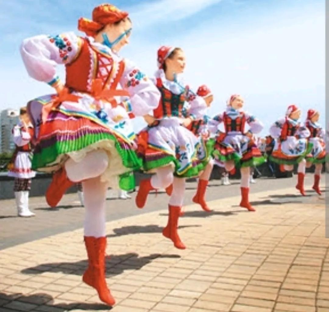 身着民族服装载歌载舞的白俄罗斯姑娘