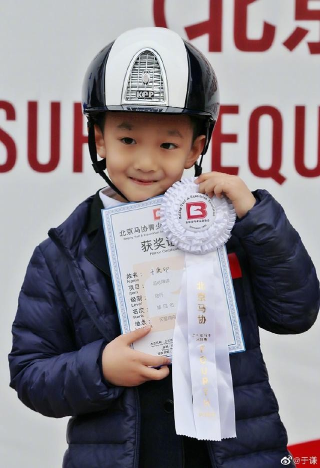 于谦老师罕见晒出小儿子的照片也引起了网友们的热议,获奖证书上也写着名字“于庚印”,拿下了场地障碍赛第四名的好成绩,于谦夫人白慧明也出镜搂着儿子一起合影对儿子取得的好成绩。此外于谦还晒出了一张小儿子的照片,网友们纷纷感叹跟哥哥长得像是一个模子刻出来的。