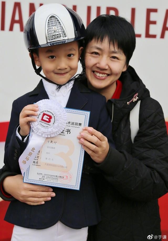 11月14日相声演员于谦罕见的在社交平台上晒出一组自己小儿子的照片,配文写道:“辛苦不会白付出,人生第一次马术比赛,成绩不错!感谢教练,感谢所有帮助他的人!希望这个爱好能一直伴随着他!”庆祝小儿子获得好成绩,这也是他人生第一次参加马术比赛。