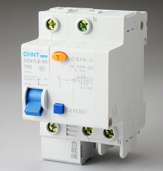 漏电开关也可以说是空气开关的一种,机械动作、灭弧方式都类似。但由于漏电开关保护的主要是人身,一般动作值都是毫安级。空气开关和漏电保护器最直观的区别就是漏电保护器有一个漏电试验按钮,而空气开关则没有。