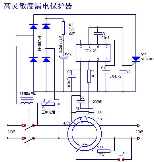 漏电保护器,顾名思义,就是防止漏电,造成安全事故而装置的一种开关。漏电保护器的作用原理就是其中心有一块小小的芯片,这个芯片上共有两个名为绕组的东西,一个主一个副,主绕组又分为有两个绕组,即输出和输入电流绕组。如果没有发生漏电的时候,输出的电流和输入进来的电流是相等的,从而在芯片上两磁通的矢量就为零,不会在绕组器上产生任何安全事故,如果一旦背离了这个原理,那么副绕组上就会产生电压,推动其内置的机构,最后并自动跳闸。