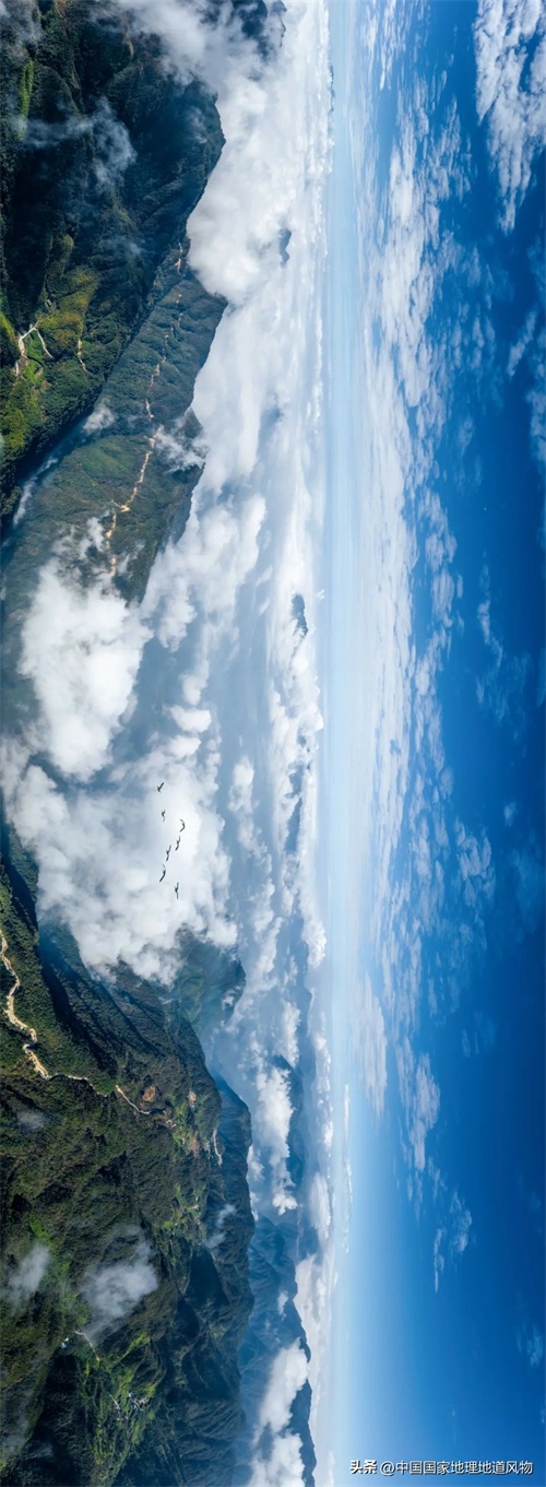 在炎陵县梨树洲乡航拍的罗霄山脉。 摄影/咏洲