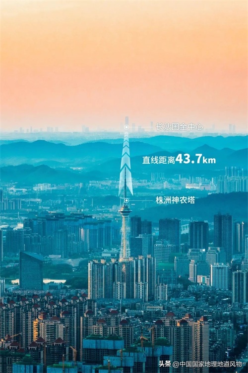 自株洲神农塔遥望长沙国金中心。 摄影/石彦科,制图/宫志博