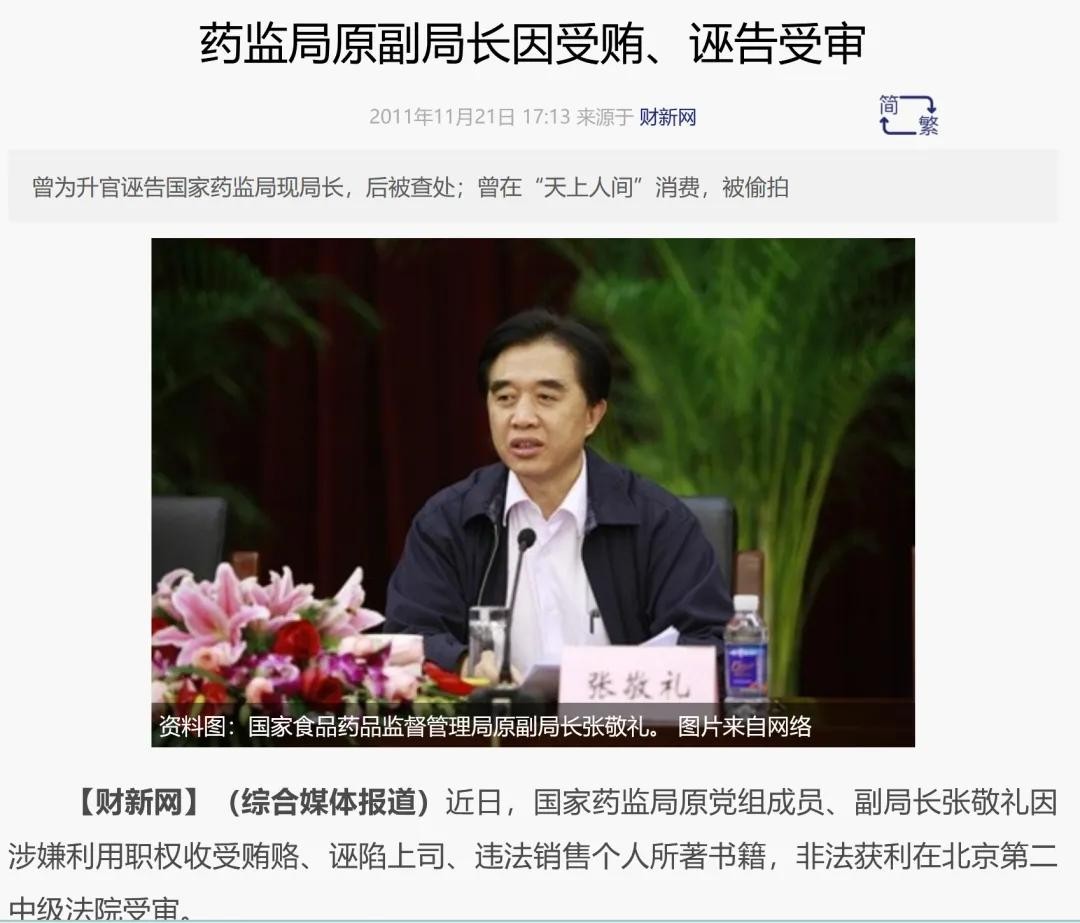 据报道,当年,国家药监局内部通报张敬礼的处理决定后,当场播放了一段视频,是张在“天上人间”被拍到的画面,内容不堪入目。