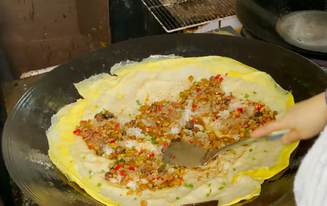 做豆皮也很讲究搭配,需要4个土鸡蛋,两个普通的鲜鸡蛋,这家的豆皮还是区别于武汉其他地方的豆皮,豆皮是使用绿豆和大米做的,而且一锅豆皮要放6个鸡蛋,大多数的豆皮店只放两个鸡蛋。