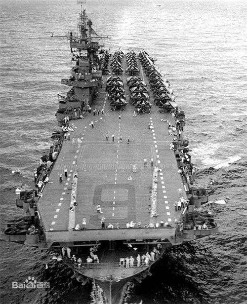 遭到重创右倾的大黄蜂号,可以清晰地看到甲板上有两个弹洞
