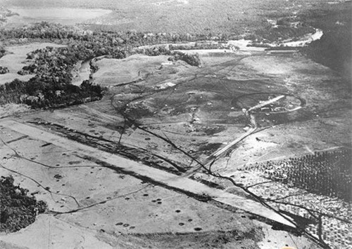 沼泽泥泞中的亨德森机场,周围可以看到大量弹坑