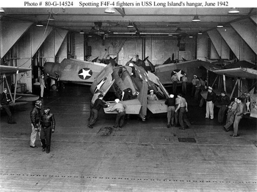 长岛号护航航母机库内的野猫战机