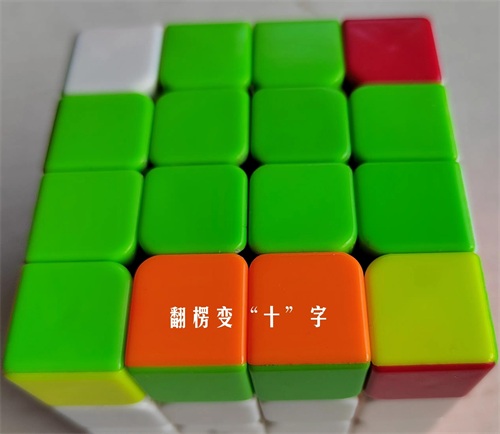 2.翻一组楞成“十”字:三上(次翻)三下(次左)上下下(TRU2向上转90⁰TRU2TRU2TR'U2TL'U2TR'U2TRU2TR'U2TR')