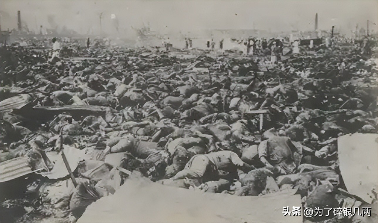 大量的尸体堆在一起,一层叠一层,一眼望去全部都是死人,这算是人类第一次知道原子弹这种大杀器的真实威力,一颗炸弹随随便便就可以杀死几十万人。