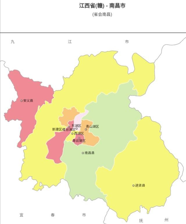 南昌市下辖6个市辖区、3个县,共9个县级行政区。