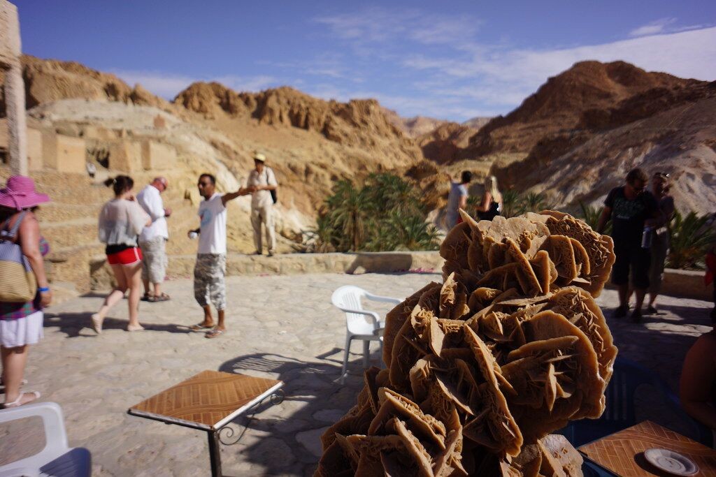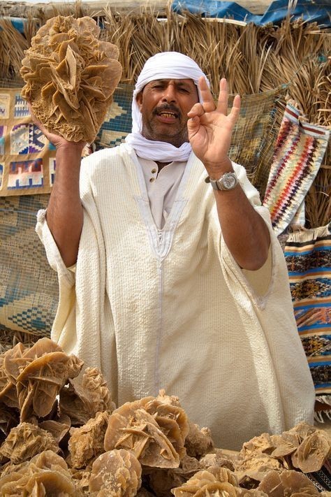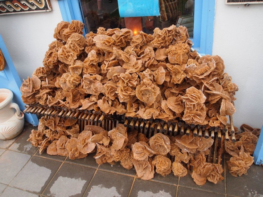 “买一个吧,多好看的沙漠玫瑰啊,永不凋谢,它象征着永恒的爱情!”在老城街市,摊主们都会这样殷勤地招呼顾客,赋予了沙漠玫瑰石特有的人文内涵,沙漠玫瑰石俨然成了北非地区的特色文化符号,成了少男少女互表钟情,传达爱意的礼物。沙漠玫瑰石优雅高洁,不但寓意爱情,也是友谊地久天长的标志。看来,美好的事物,总是让人有着更美好的解读。