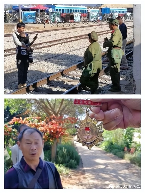 百年沧桑,谁都没想到,电影《芳华》,让碧色寨重新热闹起来。不少游客学着《芳华》,穿着租来的军装在站台拍照。1968年从这儿去越南“援越抗美”的70位老兵也相约而来,其中一位(下图下)掏出当年的立功奖章感慨万千:仅过去十年,《芳华》里的新兵又从这儿跨过国门对越自卫反击战了。