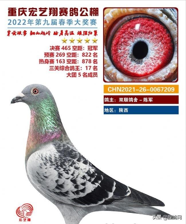 穿云破雾,翻山越岭,酷暑高温,顽强归巢,说的就是重庆宏艺翔赛鸽公棚第九届春赛。热身赛、预赛、决赛,每一关都充满挑战。465公里决战时刻,陕西鸽友双顺鸽舍-陈军强势突围,其一羽21-26-0067209雨点爱鸽率先归巢,凭借1280.1692米/分的分速获得冠军,同时以三关878名、822名、1名位列三关综合鸽王17名。