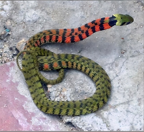 经我从小到现在的研究,在结合我们当地蛇的品种,得出了一个结论,“鸡冠蛇”应该就是我们老家常说的“野鸡脖子”这种蛇的全名叫做“虎斑颈槽蛇”有毒,当遇到危险的时候它就会立起来,就像眼镜蛇一样,而它的背后长着一些红色,所以当突然看见它,它又立起来,人在受到惊吓,很容易把它看成长着鸡冠的蛇。