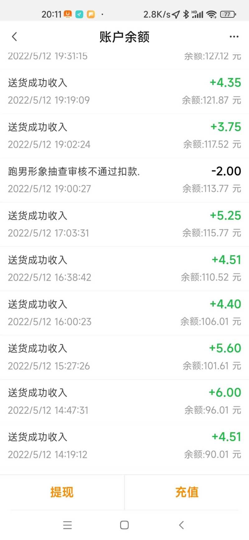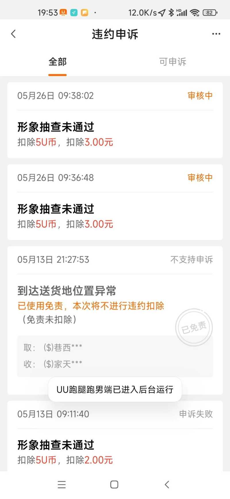 前段时间在家无事,申请一个UU跑腿闲来无事赚点外快,(从BOSS直聘上有人给我联系的,说平均一单20块,)就网上注册申请了,周一下午到国购广场听了课,交了一百多多块钱买了必须品,然后就开始了,第一天跑了八个小时60多块钱,钱多钱少无所谓,扣钱是无处不在啊,一会一个形象抽查,专门在你给客户送到门口的时候让你拍照上传,你是先到楼下拍保温箱还是把物品给顾客?因为这里面还牵扯一个顾客的验证码,一天N多次的抽查,大半夜十二点还抽查,一次三块钱,之前说一单20块左右,我做了半个月也没有一个15元的单子,每天就是抢一些美团和饿了么的单子,每天再扣一个3块的保险费,真的坑,平常一天也就是几十块钱,一百多的都很少了,用他们的定位系统更是能把你在淮北带迷路了。虚假广告倒是挺多!淮北到濉溪五块多,昨天步行街到高岳街六块钱!