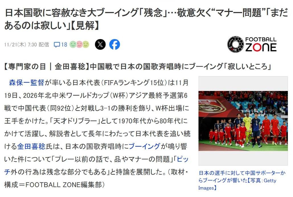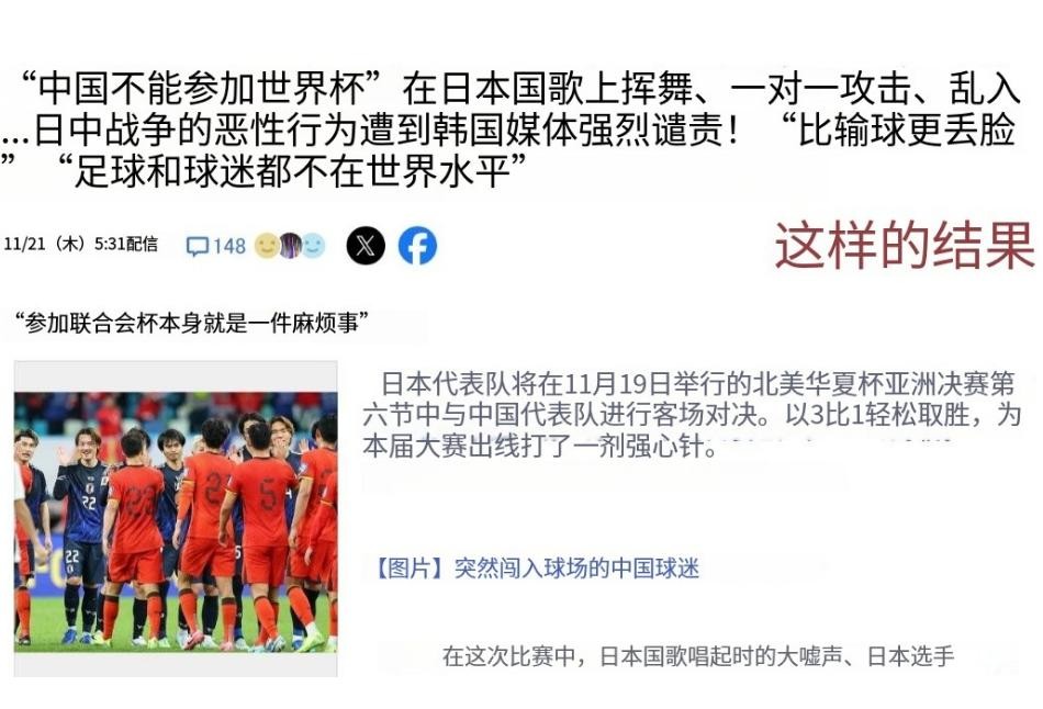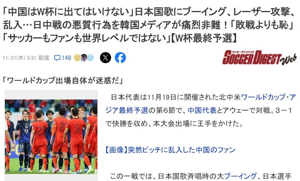 并且表示日本足协应该上报到FIFA,对国足进行重罚。