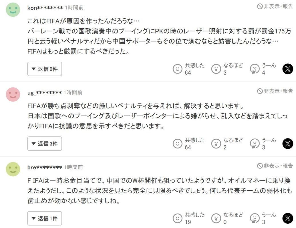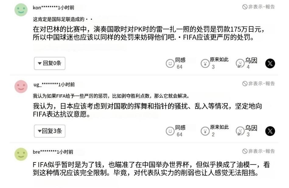 根据这些情况,很多日网友发文说到,应该上告到FIFA,对国足严惩。