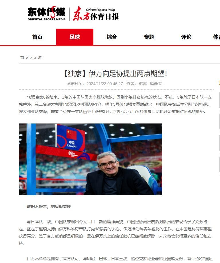 参考信源:2024/11/22【独家】伊万向足协提出两点期望!