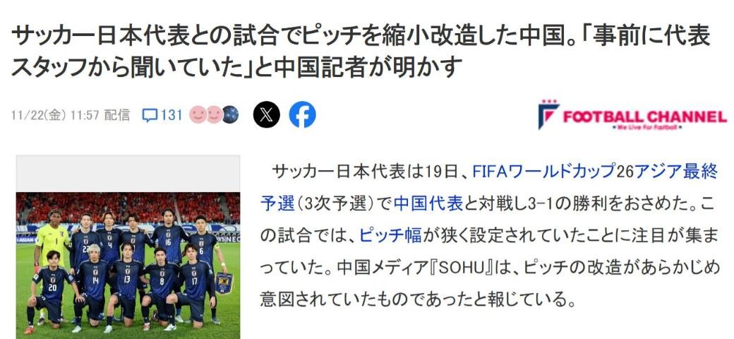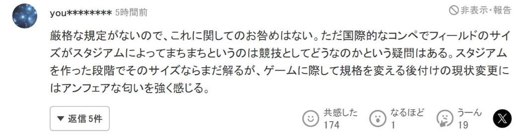 其次,日媒也转发了马德兴记者在某个节目当中提到的场地缩短问题。