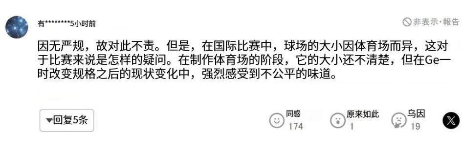 随后还有人说到,只要在FIFA的规则之内修改并没有问题,场地的大小本来就不一样。