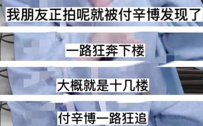 但是男方的警惕性很高,发现娱记跟拍之后直接就追过去了,娱记朋友就在前面跑,付辛博就在后面追。