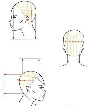 (1)剪发区位,水平三分区位(额点与GP点水平连线以上为上区位,耳点与后脑点连线至额点与CP点水平连线之间为中区位,以下为下区位)。