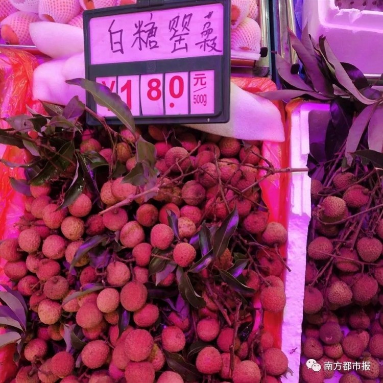 五羊新村附近一水果店的荔枝卖18元一斤。