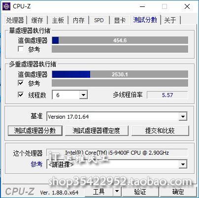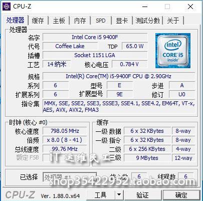 英特尔九代酷睿I5 9400F在CPU-z测试得分