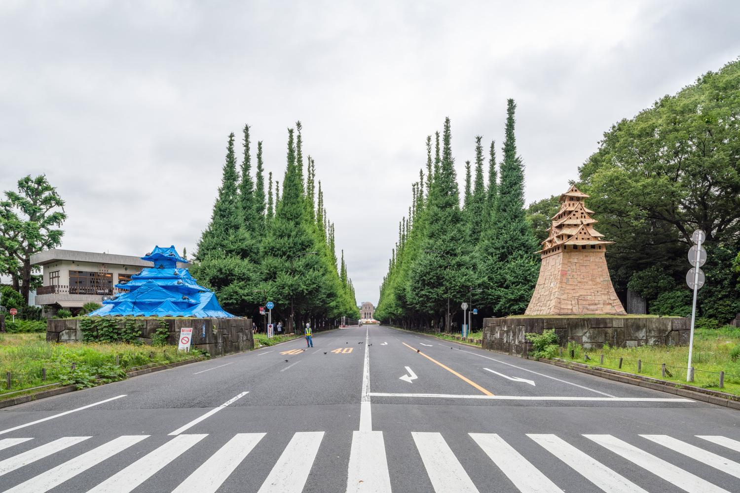 街道干净整洁,锥子型的松树修剪得十分立体,这是通往日本奥运开幕场馆的干道之一。