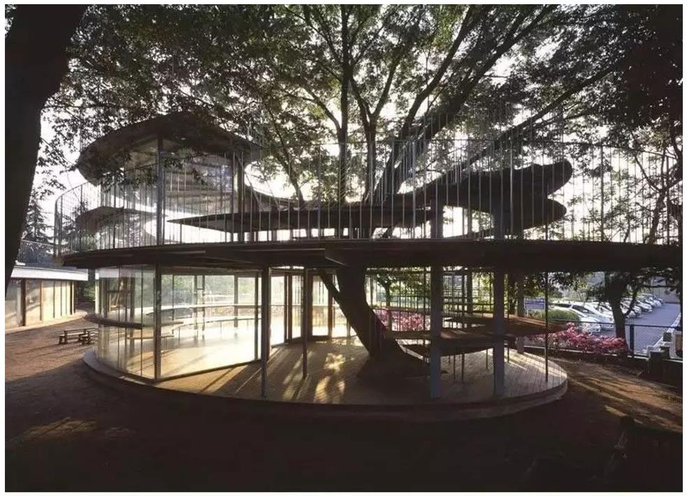 围绕着一棵百年树龄的榆树建造而成的幼稚园活动场所,日本对幼儿的活动场地用了很多心思。