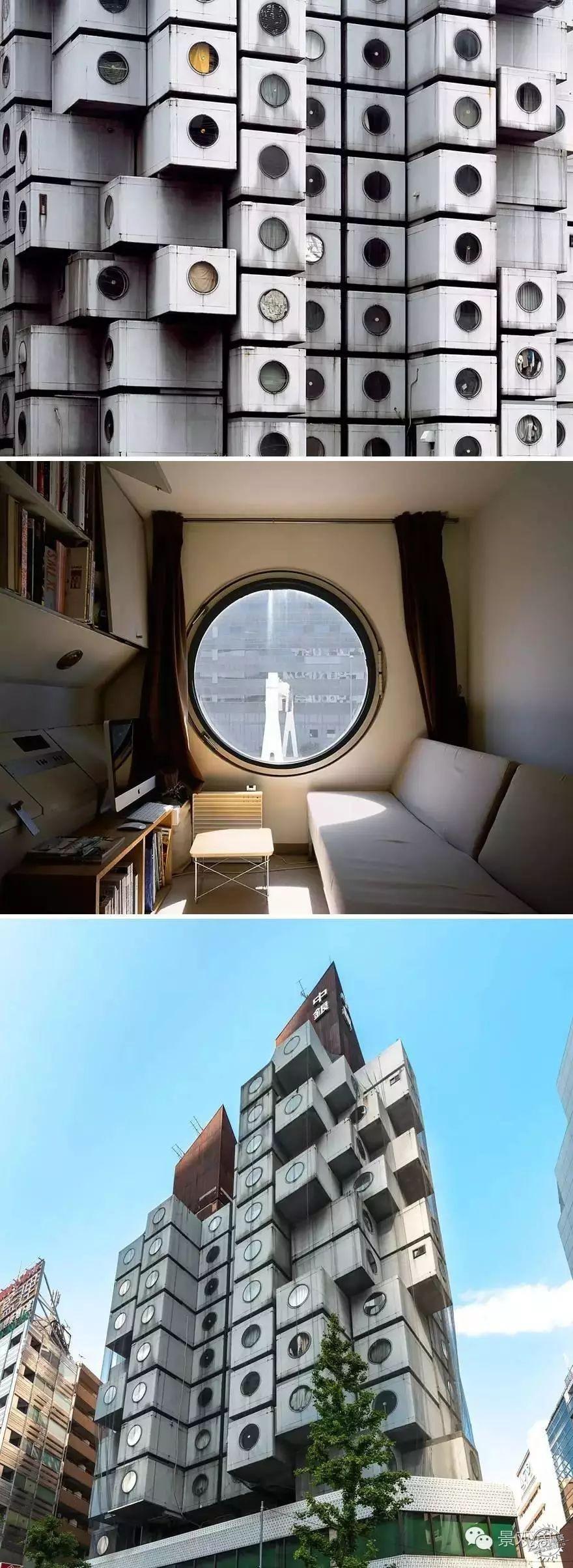 中银胶囊塔被认为是现代建筑史上首座真正以胶囊般的建筑模块兴建的建筑,它由两座相互连结的大楼组成,总共包含了140块预铸建筑模块,每一个独立单位被设计为可以独立更换。