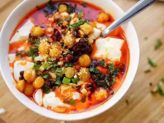 对于南北的甜咸之争,四川人默默打出一个问号:豆腐脑难道不应该是辣的吗?如果你吃过四川的乐山豆腐脑,就一定会明白四川人的疑惑。乐山豆腐脑可谓是非常丰盛,除了嫩白的豆腐脑,浓郁的卤汁,大头菜、花生、葱、黄豆等,乐山豆腐脑,甚至还加了酥肉,粉蒸肉,粉蒸肥肠,再加上一把馓子,最重要的是那一勺麻辣鲜香的辣椒油,这滋味,根本没人挡得住。