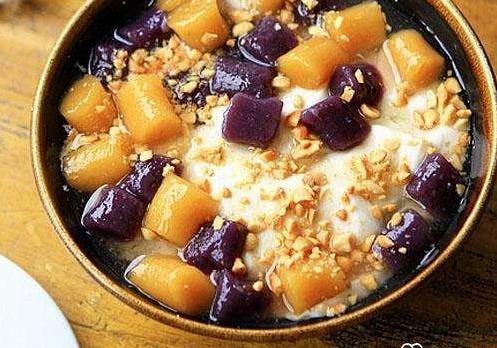 对于南方人来说,不加糖的豆腐脑是没有灵魂的。白糖刺激了豆浆的释放,两者结合在一起,柔软香甜。加了糖的豆腐脑,除了朵唯早餐之外,还有了另一种功能——夏日甜品,在很多糖水铺子里,它甚至变成了”网红小吃”,比如椰奶薏仁豆腐花、奶香红豆豆腐花、糖浆豆腐花、提拉米苏豆腐花、巧克力豆腐花……都是在甜豆腐脑的基础上,创意出的甜品。