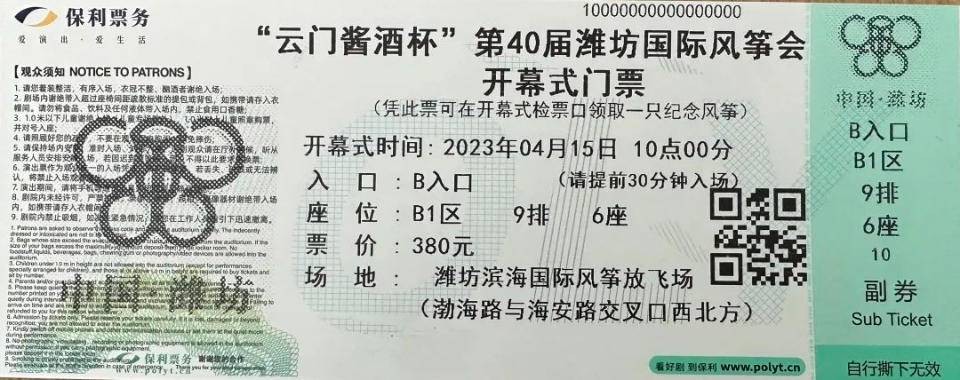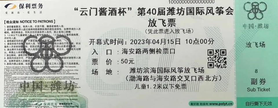 名称:第40届潍坊国际风筝会风筝放飞区门票