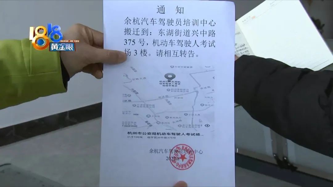从朱教练和万师傅的表态来看,两个人都有点情绪,根据企查软件上的信息,记者找到了临平东湖街道兴中路一幢综合楼,杭州余杭汽车驾驶员培训中心就在三楼办公,这位驾校负责人表示,他们是七月份从望梅路搬过来的,这份公告一直留在原来的办公地址那边,上面标明了驾校的新地址。