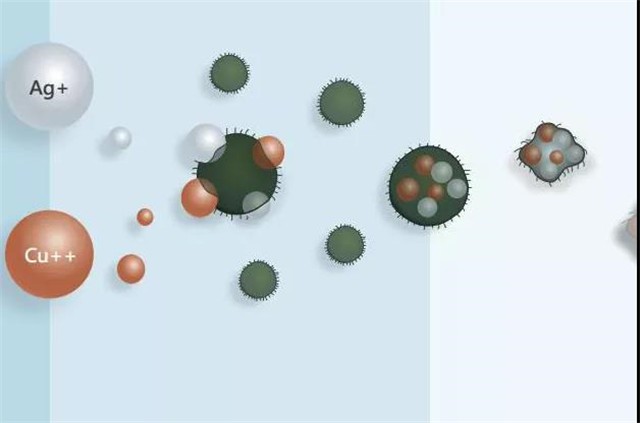 99%以上的有害菌都是单体细胞体,而单细胞细菌必须依靠氧代谢酶的氧化作用来进行呼吸。银与细菌蛋白酶中巯基发生反应,蛋白酶迅速失去活性,从而导致细菌无法进行能量代谢而被杀灭。