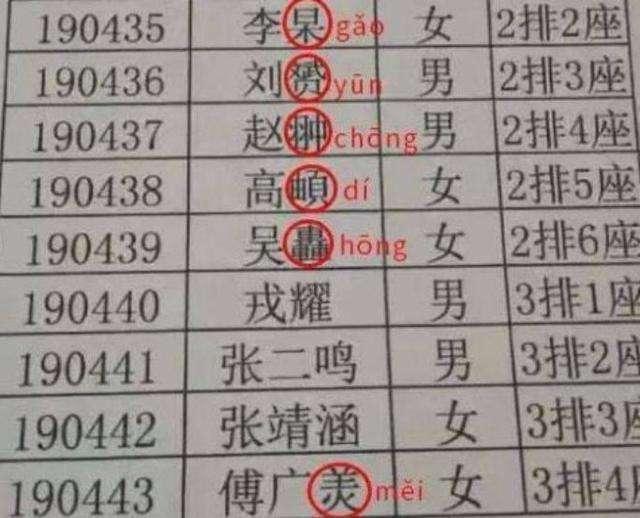 家长们不光将目光驻足到“四字”名字上,“生僻字”同样是其“涉猎”的范围,就如这张班级入学名单中,望眼一看,网友们能认识几个字?