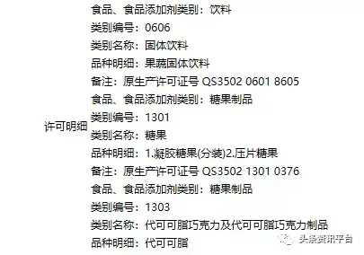 这款产品由厦门滋颜实业有限公司生产,而“一代女皇益生菌酵母软糖”和“一代女皇燕窝代餐棒”则出自安淇尔生物药业(厦门)有限公司的手笔。而这家企业在国家食品安全局备案的只有“糖”类资质,并没有生产“减肥糖”等保健食品的资质。