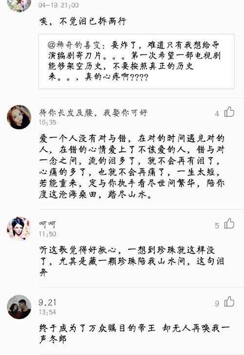 不少网友对这首歌的感叹更为深刻,仿佛每一句都在讲广平王与珍珠的故事。