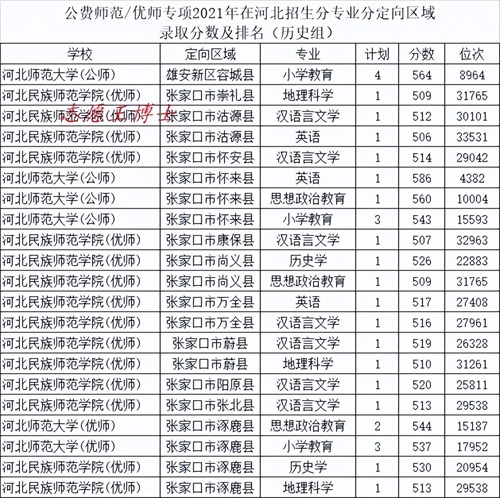 公费师范招生院校2021年在河北招生录取分数及位次10(历史组定向雄安张家口)