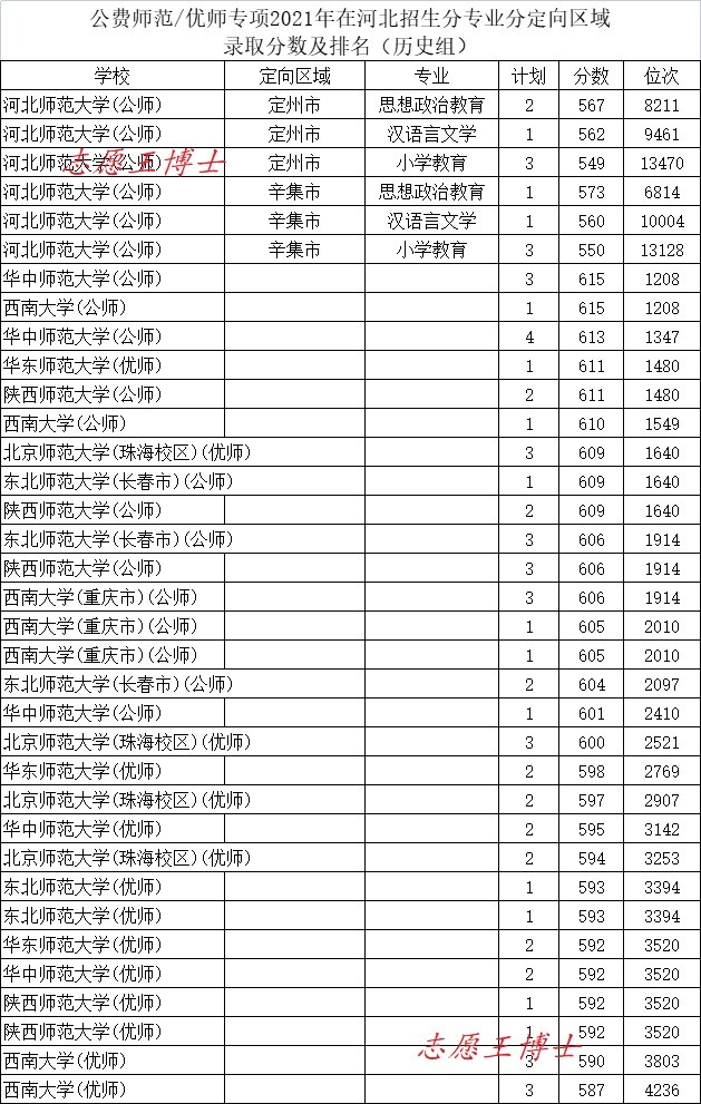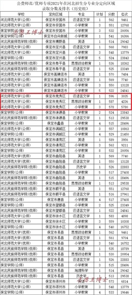 公费师范招生院校2021年在河北招生录取分数及位次2(历史组定向保定)