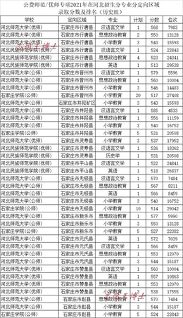 公费师范招生院校2021年在河北招生录取分数及位次7(历史组定向石家庄)