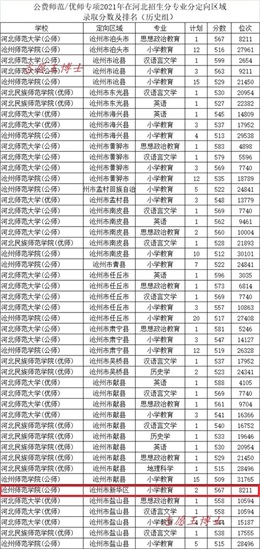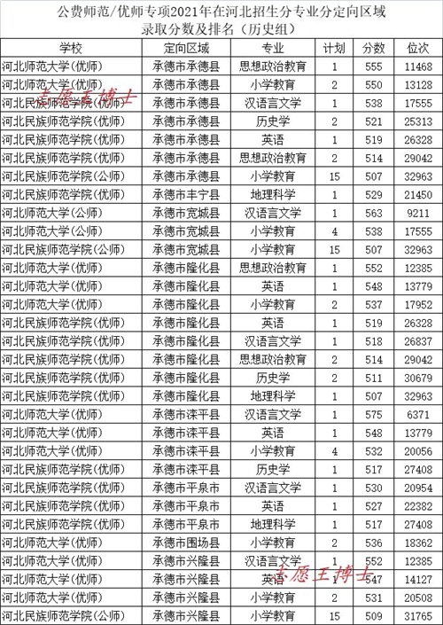 公费师范招生院校2021年在河北招生录取分数及位次3(历史组定向承德)
