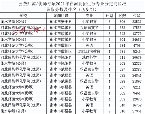公费师范招生院校2021年在河北招生录取分数及位次5(历史组定向衡水)