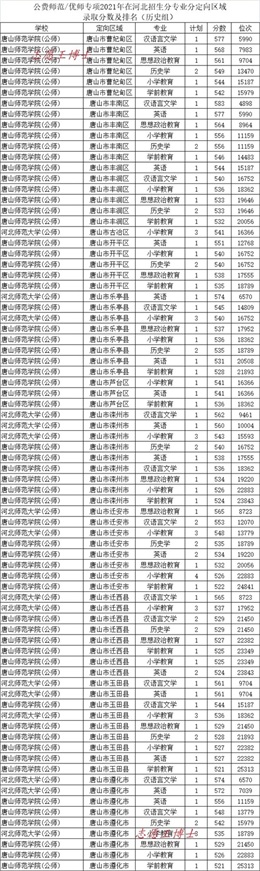 公费师范招生院校2021年在河北招生录取分数及位次8(历史组定向唐山)