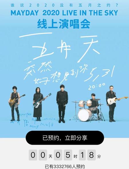这次的线上演唱会肯定引起轩然大波,在qq音乐的预约人数居然达到3百万人,是我至今看到过线上直播人数最多的歌手了,想想就等不及了。也祝五月天演唱会圆满结束。