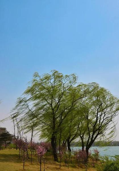 春天多风,古今如此。文人笔下的春风多是美好的“不知细叶谁裁出,二月春风似剪刀”。“春风又绿江南岸,明月何时照我还”。“春风杨柳万千条”春风带来万紫千红的同时,也会带来意想不到的灾害,诗人杜甫曾写下:“漫道春来好,狂风大放颠。吹花随水去,翻却钓鱼船”。看来自古以来春天的风既有温暖宜人的一面,又有吹树翻船的狂野。